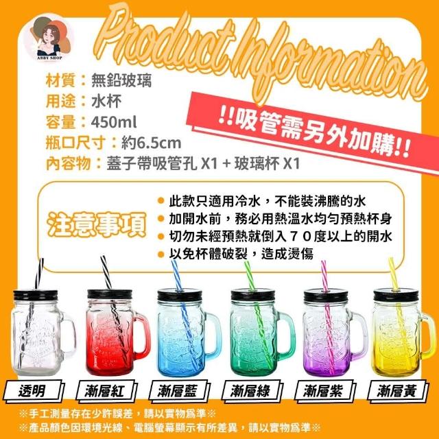 英文梅森吸管玻璃杯 450ML(梅森玻璃杯 公雞杯 梅森杯 玻璃杯子 玻璃杯 果汁杯 飲料杯 水杯 杯子)