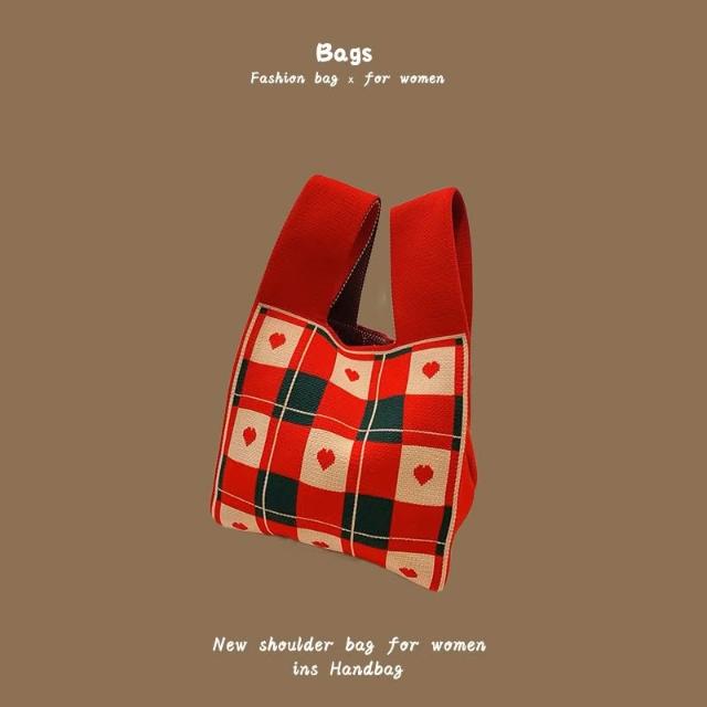 ABBY SHOPINS風針織手提包 針織托特包 手拿包 (簡約百搭 雙層提環 大容量 35x20cm)