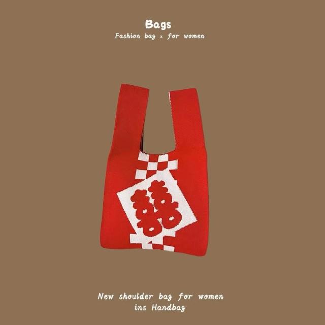 ABBY SHOPINS風針織手提包 針織托特包 手拿包 (簡約百搭 雙層提環 大容量 35x20cm)