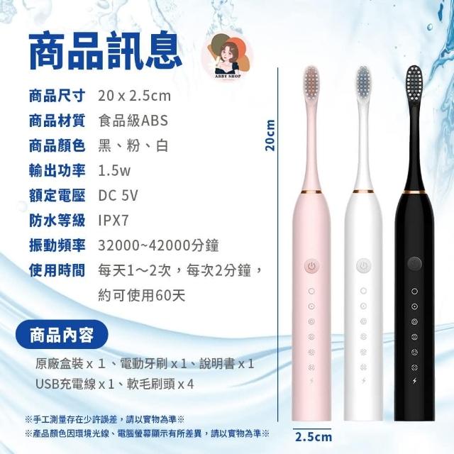 ABBY SHOP聲波電動牙刷(送四枚原裝刷頭 高轉速深層清潔 電動牙刷 聲波牙刷 音波牙刷 智能牙刷 成人牙刷 牙刷 刷頭)