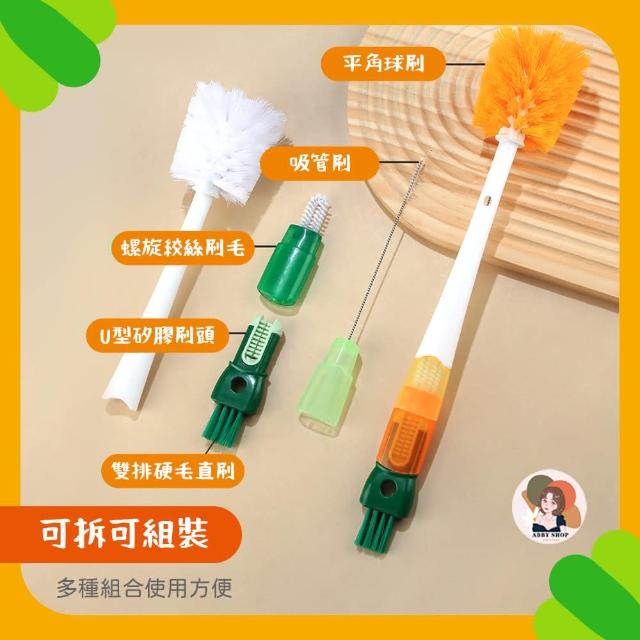 ABBY SHOP蘿蔔 五合一杯刷 長柄杯刷 保溫瓶刷 保溫杯刷 洗杯刷 吸管刷 奶瓶刷 杯子刷 水壺刷 杯刷 刷子 瓶刷 刷