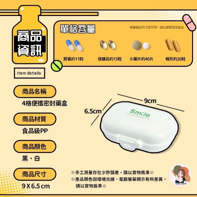 ABBY SHOP4格便攜密封藥盒(藥盒分裝盒 隨身藥盒 防潮藥盒 密封藥盒 四格藥盒 藥盒一週 分裝盒 收納盒 小藥盒 藥盒)