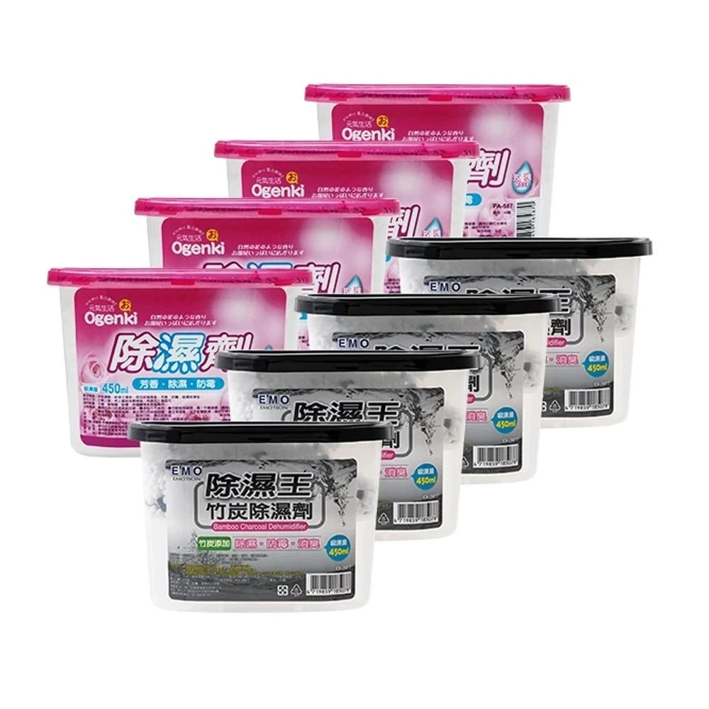EMO4入裝除濕劑(吸濕量450ml 除濕芳香 玫瑰 竹炭 衣櫃除濕 衣櫥除濕 除濕劑 除濕盒 除溼盒 芳香 防霉)