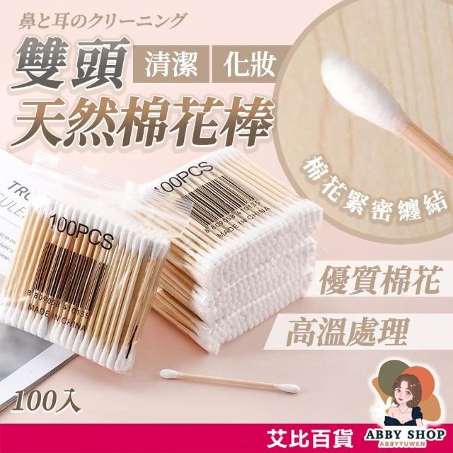 ABBY SHOP雙頭天然棉花棒 100支 多用途 粗軸棉花棒 木頭棉花棒 化妝棉棒 棉花棒 挖耳棒 掏耳棒 棉棒 清潔 化妝