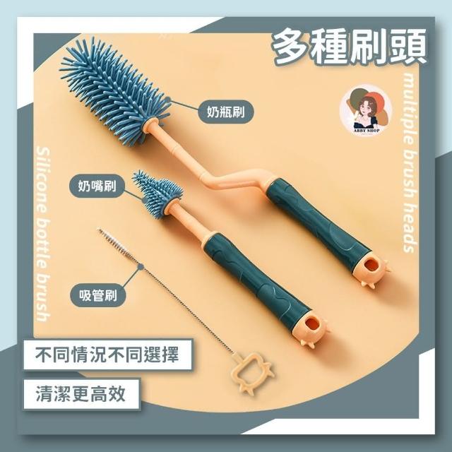 ABBY SHOP矽膠奶瓶刷 三件套 矽膠奶嘴刷 旋轉奶瓶刷 奶瓶清潔刷 矽膠清潔刷 奶瓶刷 奶嘴刷 清潔刷 洗碗刷 杯刷 刷子