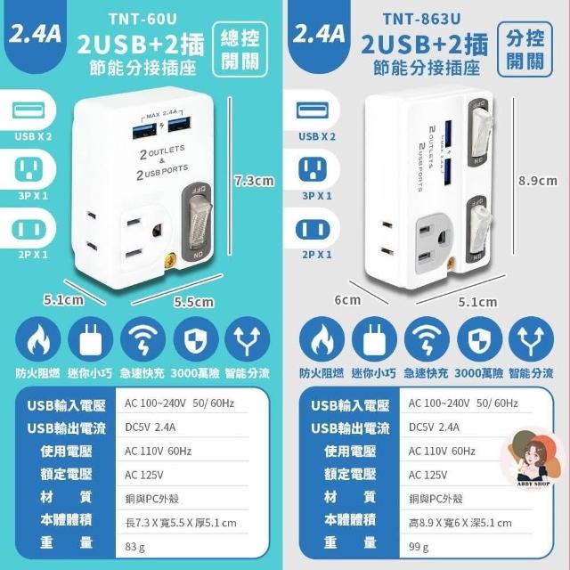 ABBY SHOPUSB充電插座 USB延長線 USB擴充排插 (國家驗證合格 防火PC材質 精巧不佔空間 安全有保障)