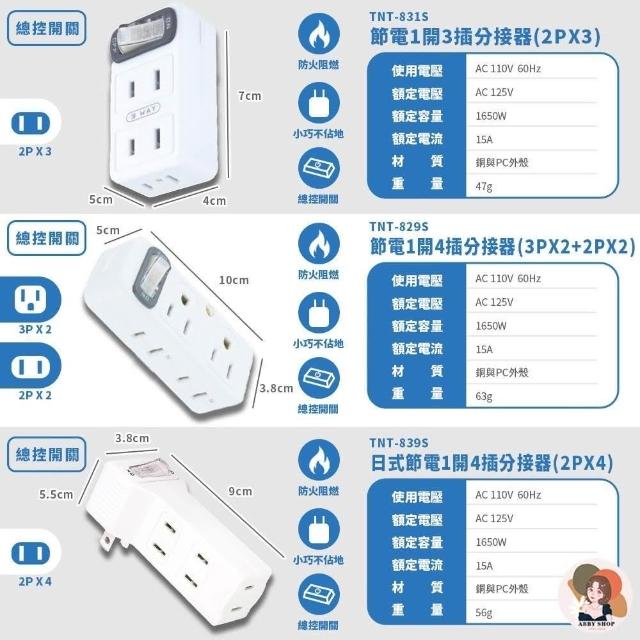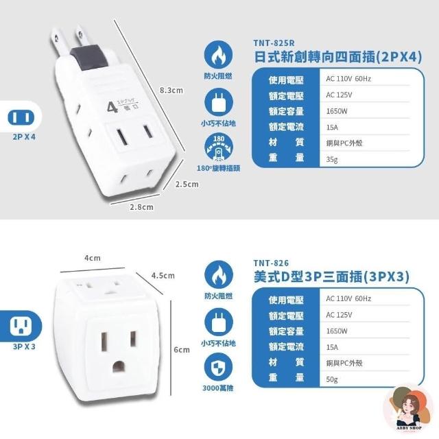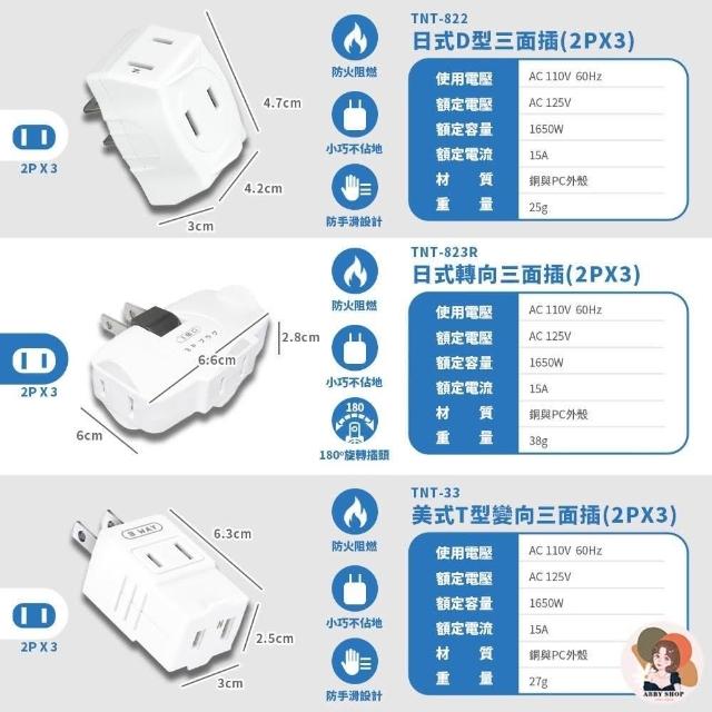ABBY SHOP轉向插座轉接頭 多孔插座 三孔插座 擴充插座 (多種規格 國家驗證 防火PC材質)