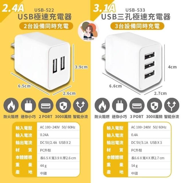ABBY SHOPUSB極速智能充電器 快速充電頭 (多種規格 多孔快充 豆腐頭 USB通用)