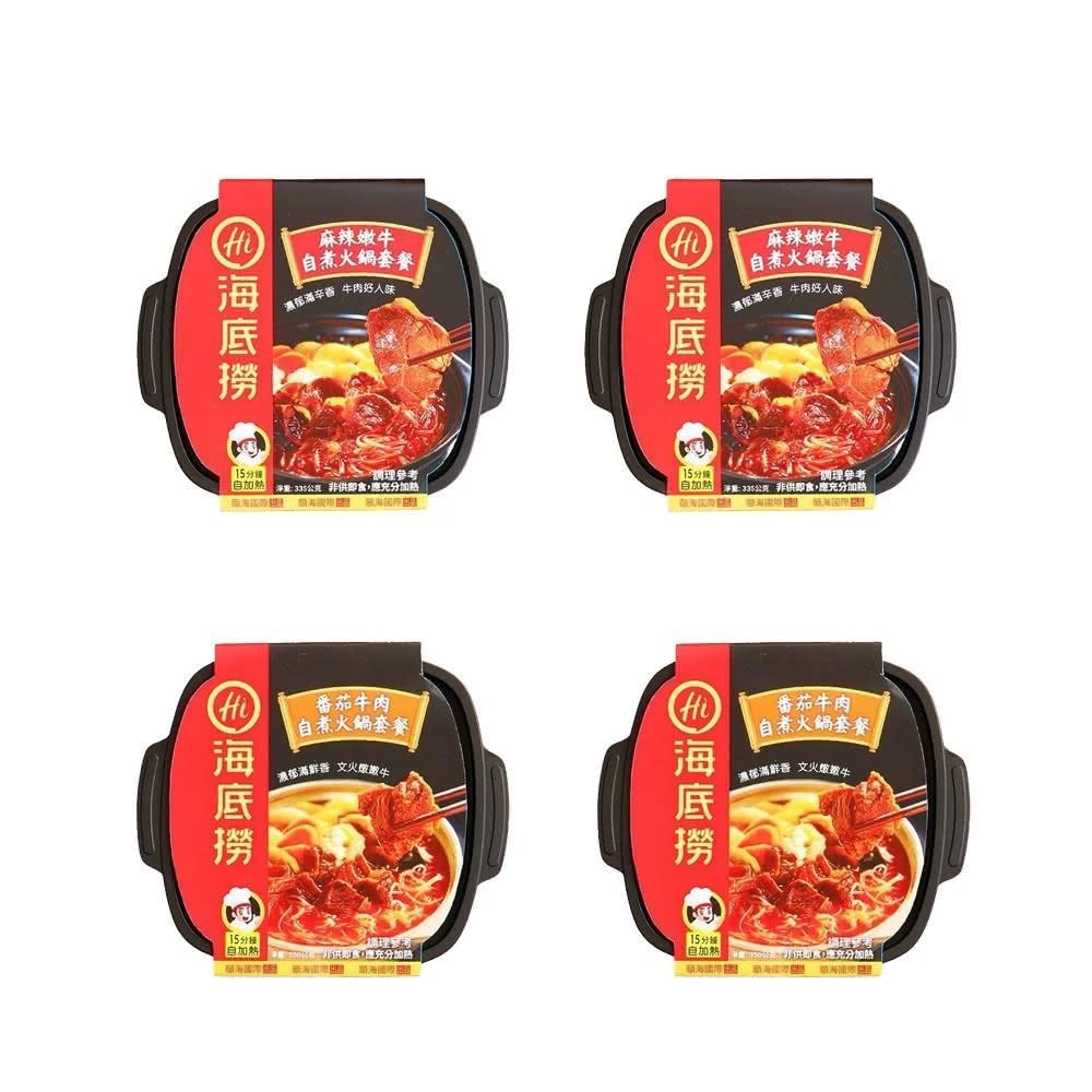 海底撈麻辣嫩牛 番茄牛肉自煮火鍋套餐 335g/350g x4入 海底撈自熱火鍋 自煮火鍋 自熱火鍋 麻辣鍋 番茄鍋 火鍋
