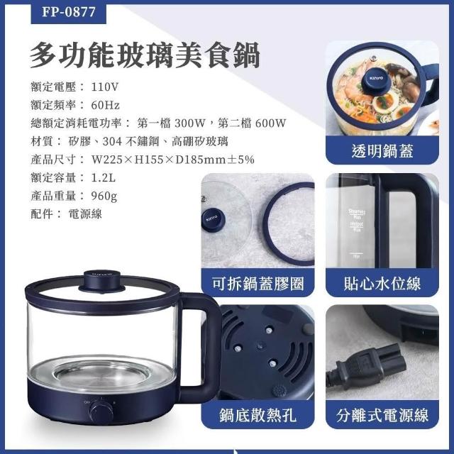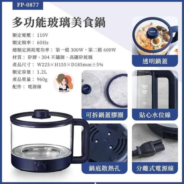ABBY SHOP多功能玻璃美食鍋 陶瓷快煮鍋 1.2L (雙段溫控調節 多重安全防護 快煮飯燉)