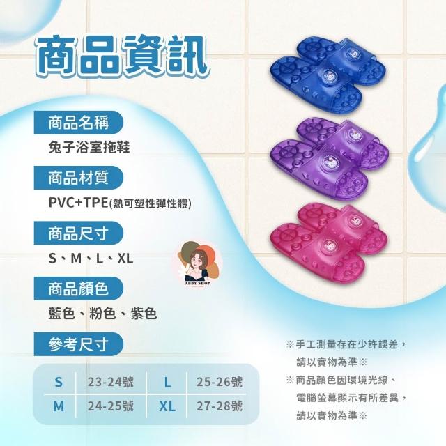 ABBY SHOP兔子浴室拖鞋 止滑浴室拖鞋 防水拖鞋(台灣製造 防水止滑 一體成型 軟底按摩 S-XL 藍粉紫三色任選)