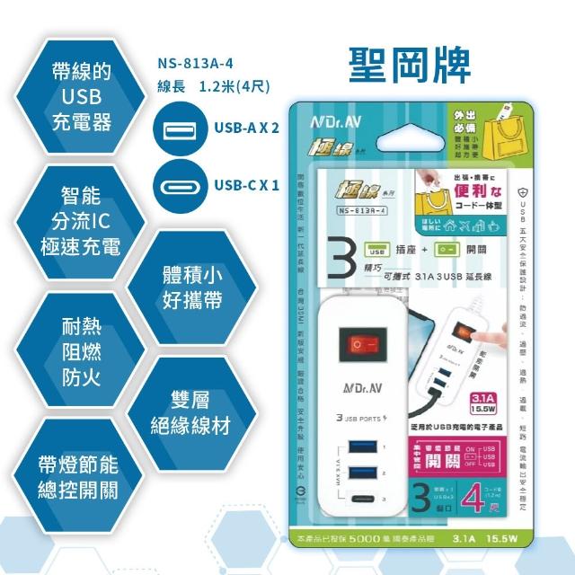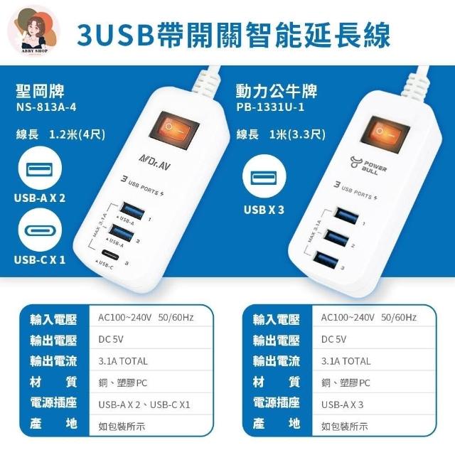 3USB智能快充延長線 USB延長線 USB充電 延長線 充電頭 充電器 豆腐頭 充電 插頭 快充