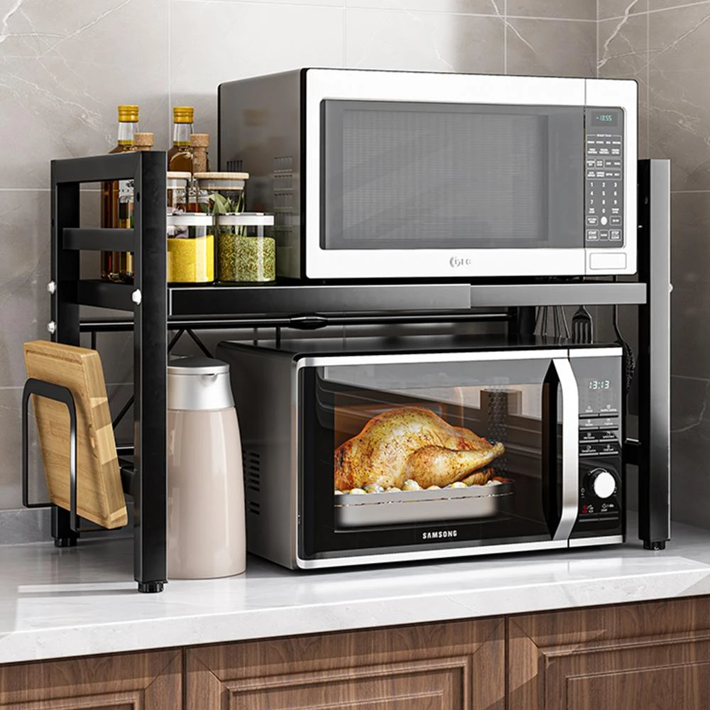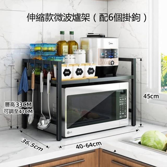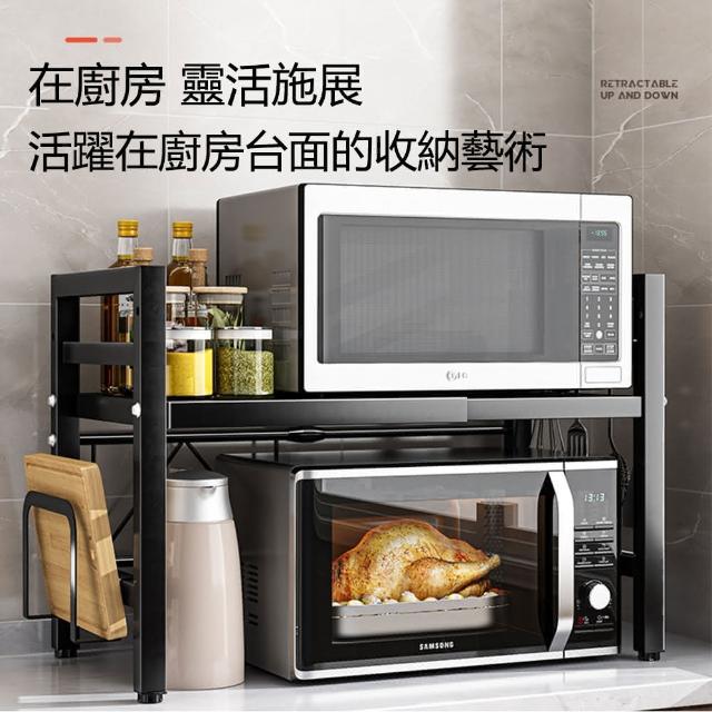 E家工廠伸縮廚房置物架 微波爐架 置物架 烤箱架 層架 廚房收納架(262-HB伸縮廚房置物架(黑色))