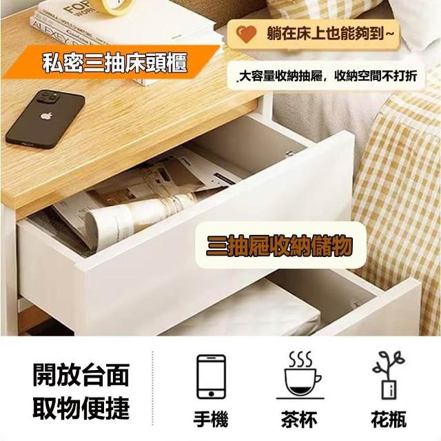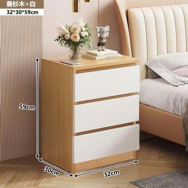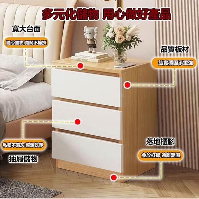 床頭櫃 三抽床頭櫃 簡易床邊櫃 收納櫃 床邊桌 收納櫃 抽屜櫃 433-HX三抽床頭櫃(賽杉木+白)