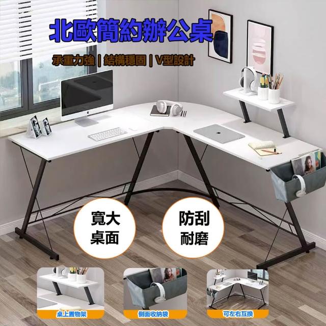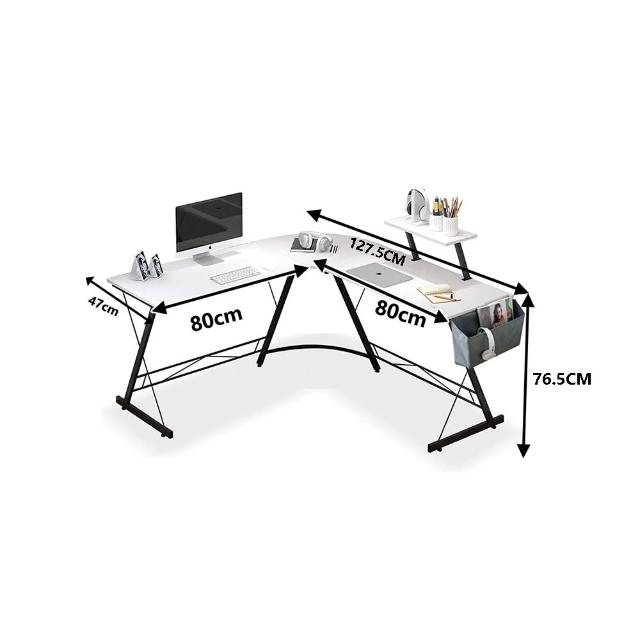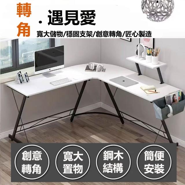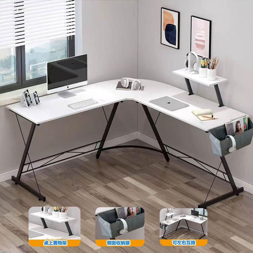 E家工廠辦公桌 書桌 電腦桌 收納書桌 寫字桌 學生桌 工作桌(358-KC轉角桌(白桌面+黑鐵))