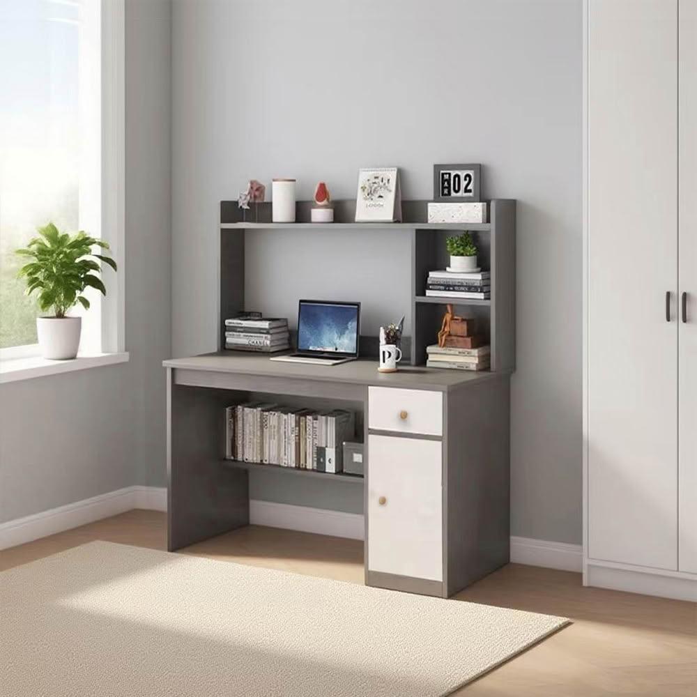 E家工廠書桌 電腦桌 80公分書桌 工作桌 書桌帶書架 學習桌 120-80公分帶書架書桌(灰色)