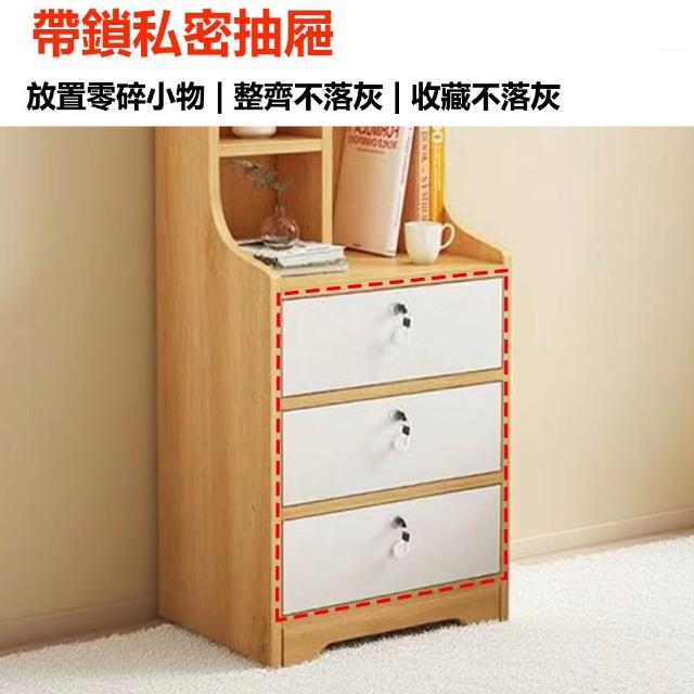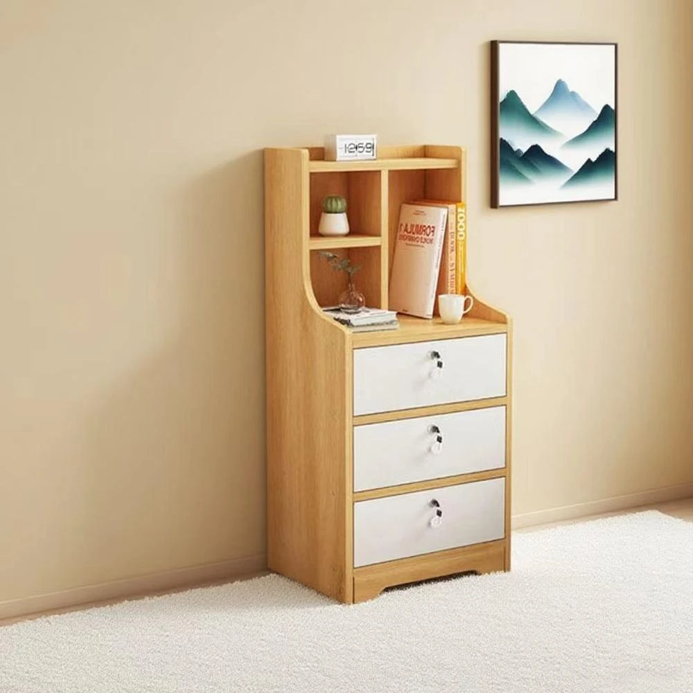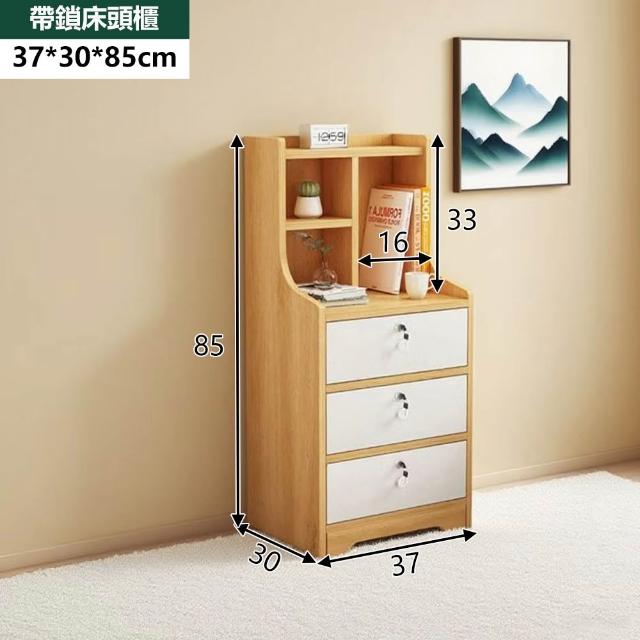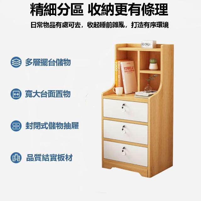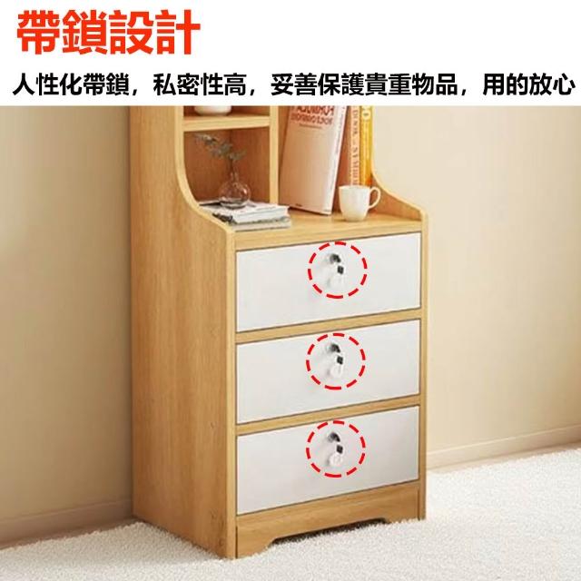E家工廠三抽床頭櫃 床邊桌 抽屜櫃 臥室收納櫃 帶鎖小櫃子 床邊收納櫃 472-三抽床頭櫃(原木色+白)