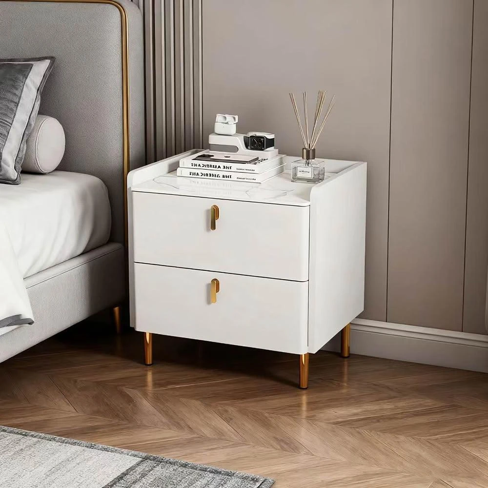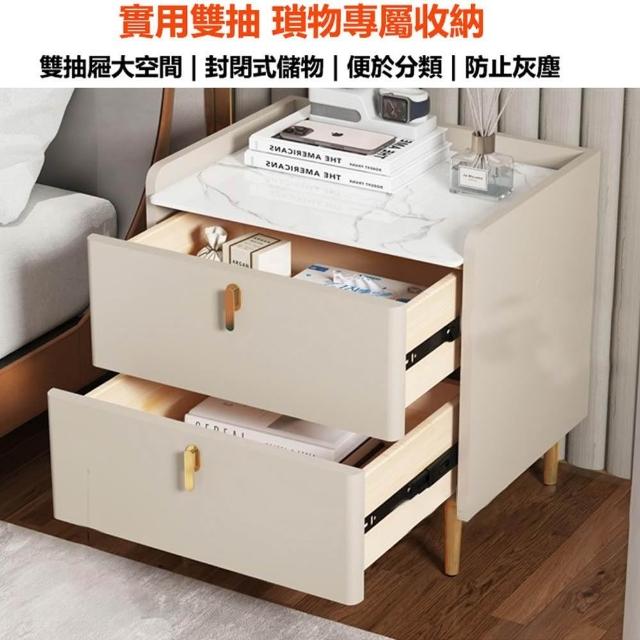 E家工廠40公分兩抽床頭櫃 實木框架床邊桌 抽屜櫃 小櫃子 臥室收納櫃 475-滑軌雙抽床頭櫃(40公分白色)