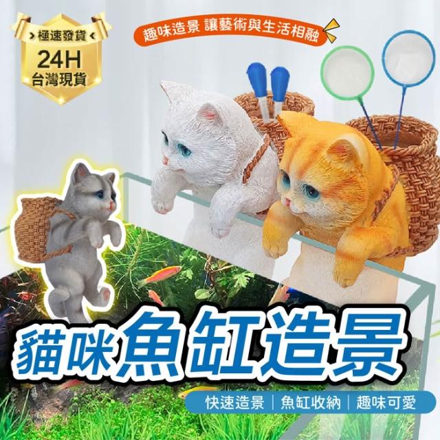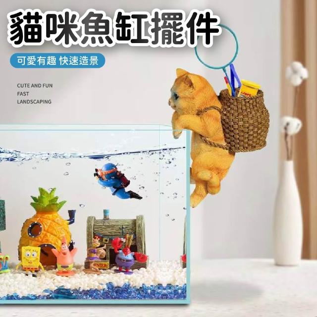 龜室|水族魚缸造景系列 貓咪掛缸 創意掛缸擺件 造景裝飾