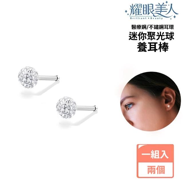 耀眼美人迷你聚光球鋯石鑽養耳棒鈦閃耀/鈦鋼耳環兩入(過爐款/618年中慶/造型美容美感品味)
