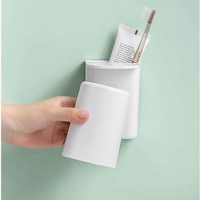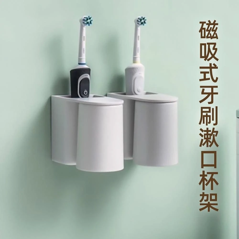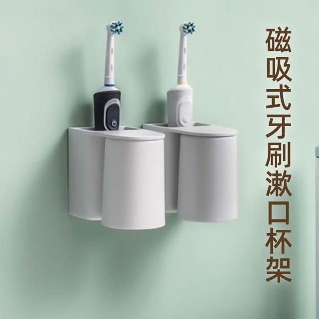 牙刷杯架 漱口杯架 免打孔磁吸漱口杯 牙膏牙刷置物架 壁掛漱口杯 掛牆式瀝水收纳盒
