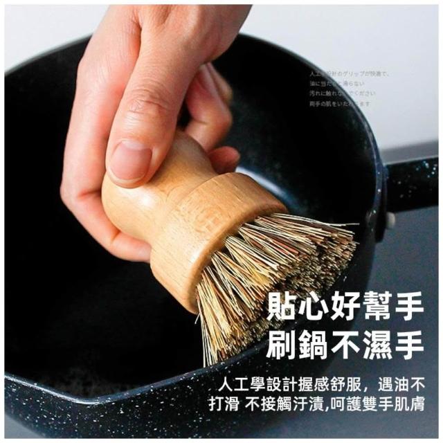 鍋刷 厨房鍋刷 櫸木去污刷 劍麻短柄植物絲混棕清潔刷 洗碗刷 洗鍋刷