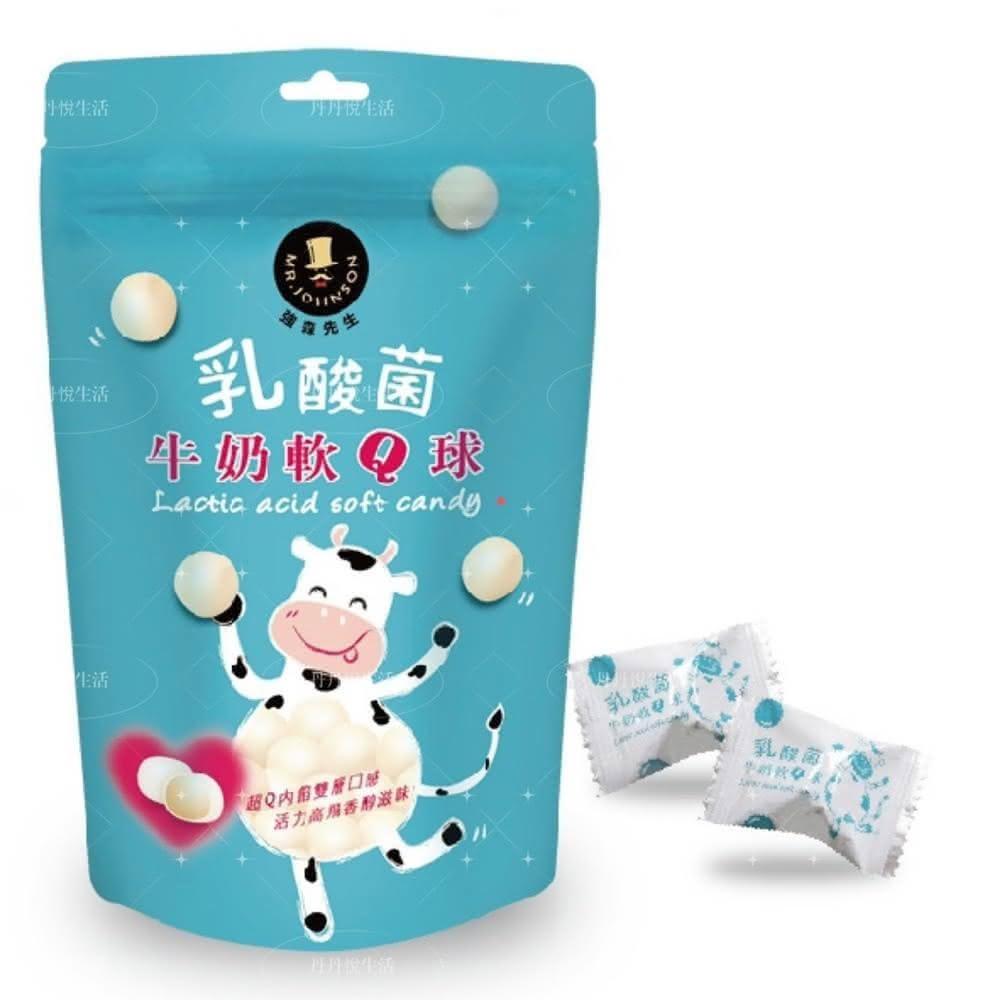 強森先生乳酸菌牛奶軟Q球 100g*5袋組 (超Q內餡/雙層口感/牛奶糖)