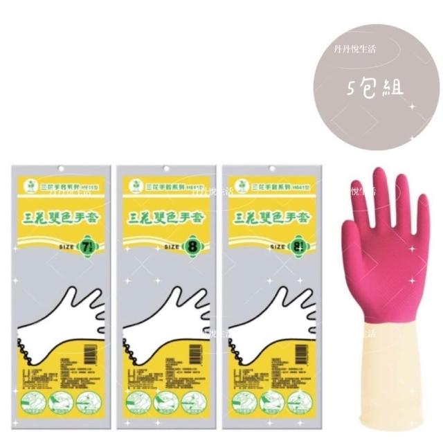 三花H641型 雙色洗碗手套*5雙組 (尺寸任選S~L號;一次性/拋棄式)