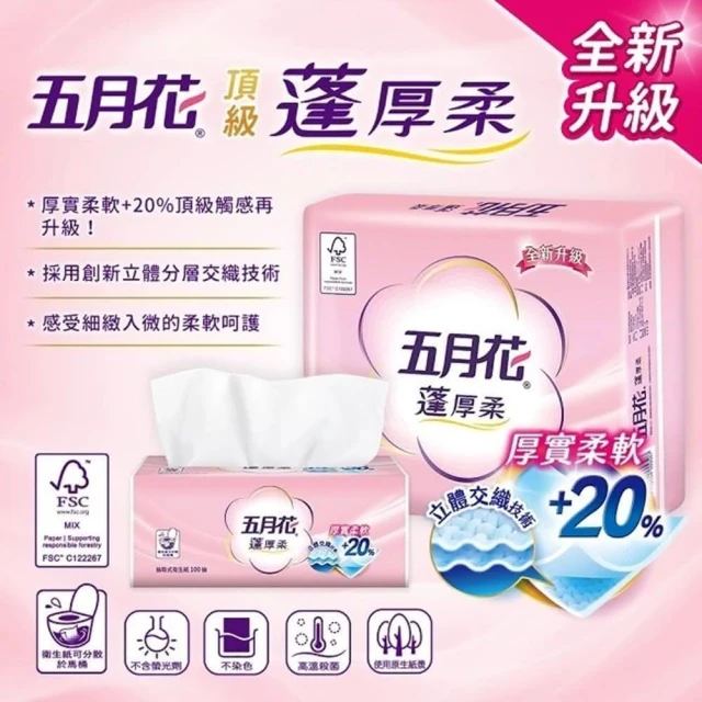 MAY FLOWER 五月花蓬厚柔頂級抽取式衛生紙 100抽*12包*6袋 (箱購)