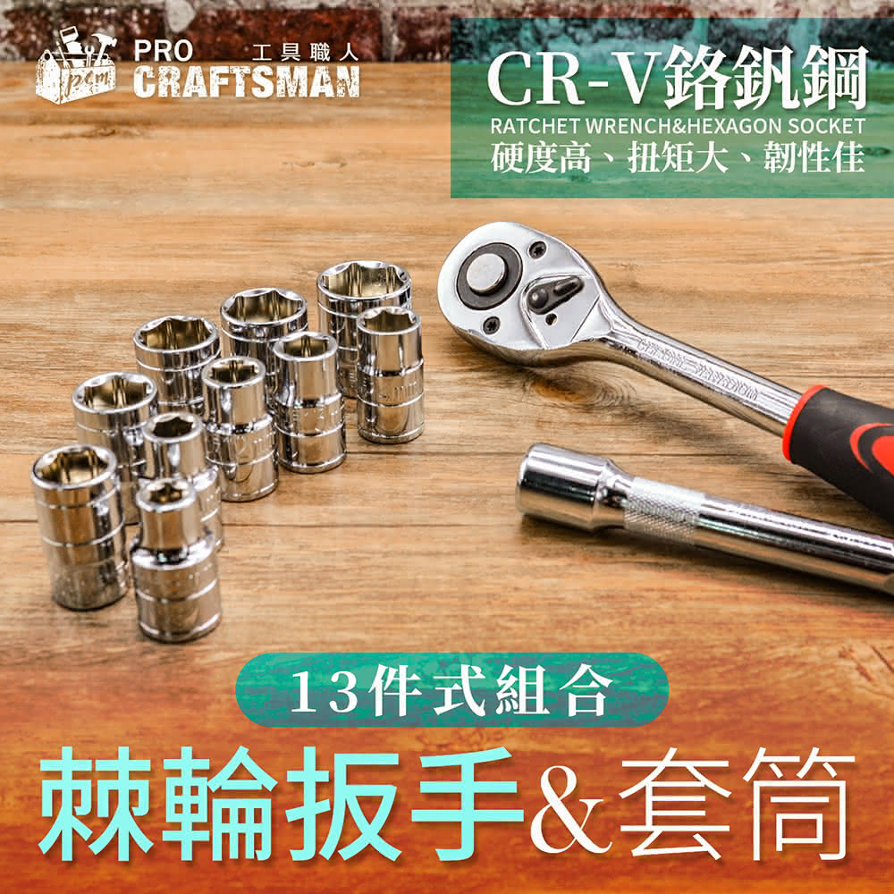 《🌞工具職人》CrV鉻釩鋼-套筒扳手13件組 便攜快拆棘輪T型氣動六角柄起子機 汽機車維修鋰電動板手腳踏車螺帽拆卸螺絲