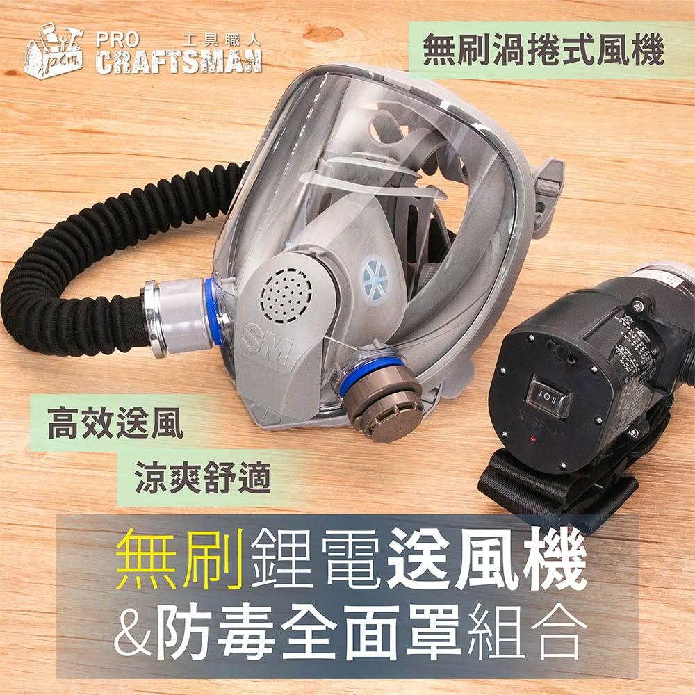 《🌞工具職人》無刷鋰電送風機+防毒全面罩 送風器防塵面具工業粉塵濾毒罐過濾罐3M過濾棉 防疫醫療N95口罩烤漆噴漆噴農藥