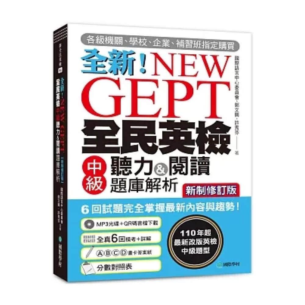 國際學村NEW GEPT全新全民英檢中級聽力&閱讀題庫解析 (新制修訂版 ):110年起最新改版英檢中級題型!6回試題完全掌握最新內容與趨勢!(附聽力測驗MP3+音檔下載連結QR碼)
