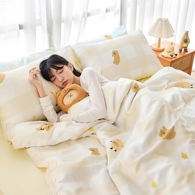《伯尼寢具 咻咻熊聯名》晚安小熊泥-奶油黃 床包兩用被組 天絲60支 tencel 床包 膠原蛋白 100%萊賽爾纖維