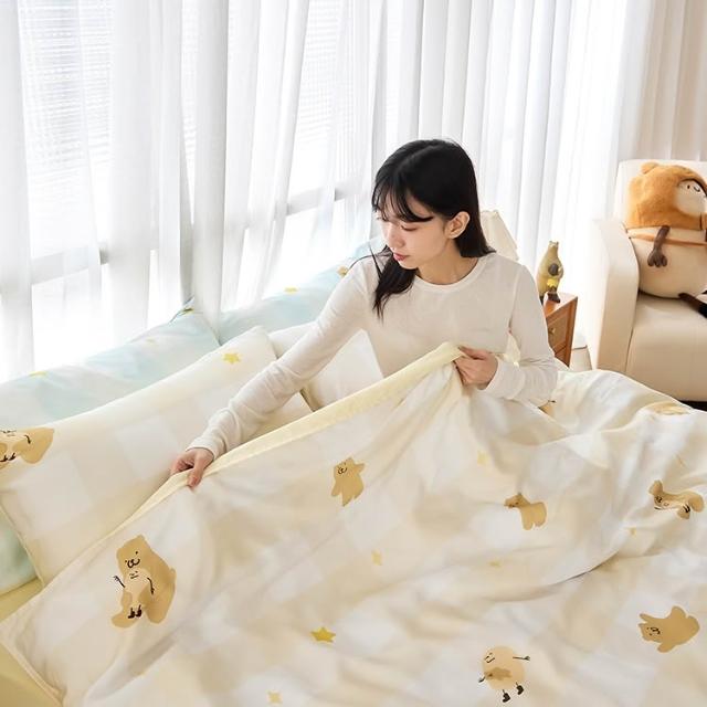 《伯尼寢具 咻咻熊聯名》晚安小熊泥-奶油黃 床包兩用被組 天絲60支 tencel 床包 膠原蛋白 100%萊賽爾纖維