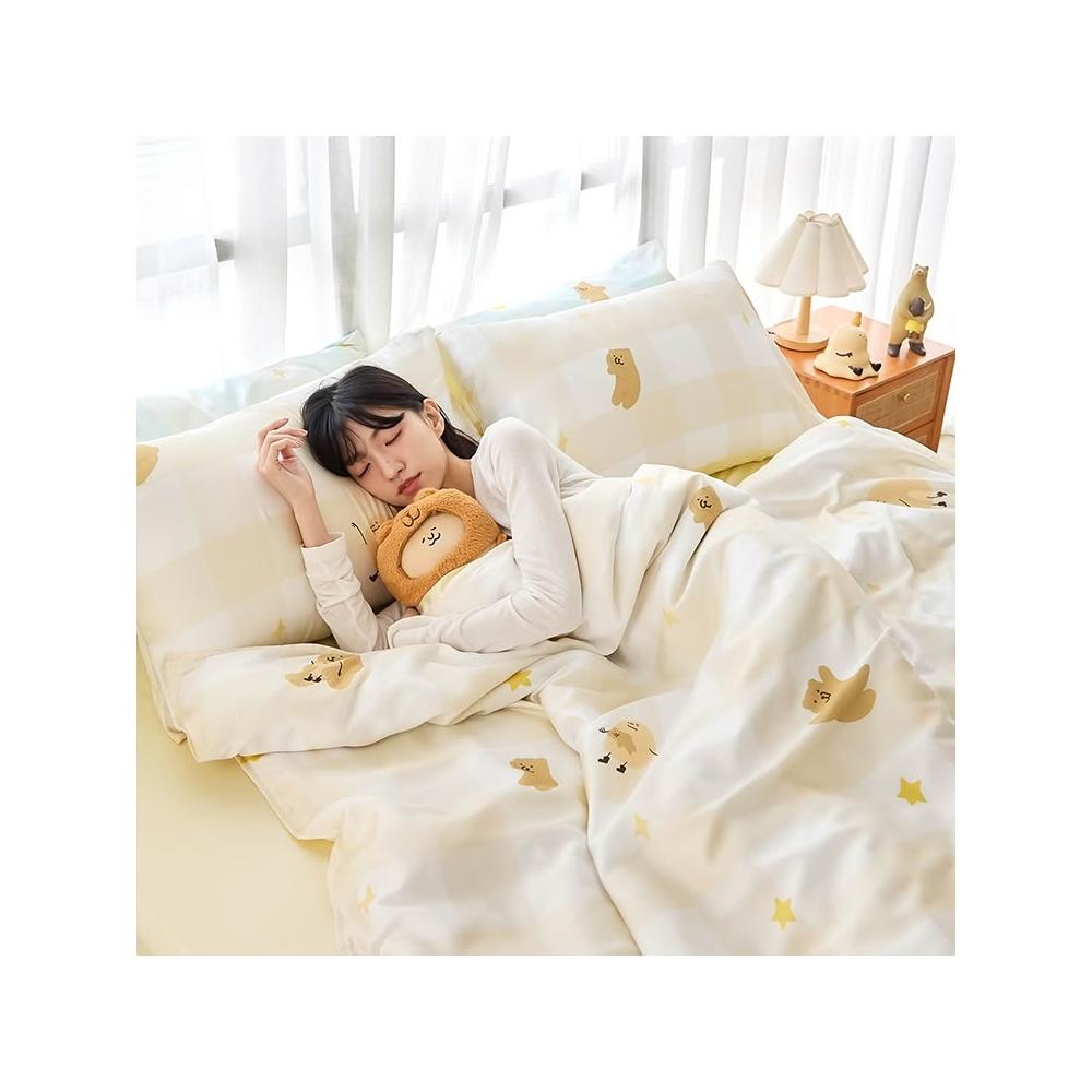 《伯尼寢具 咻咻熊聯名》晚安小熊泥-奶油黃 床包兩用被組 天絲60支 tencel 床包 膠原蛋白 100%萊賽爾纖維