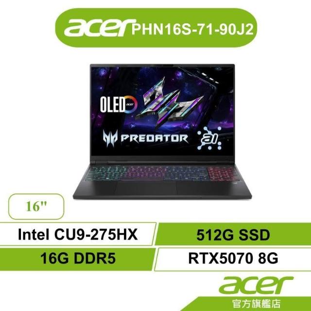 Acer 宏碁16吋Ultra 9 RTX5070電競筆電(Predator/PHN16S-71-90J2/Ultra 9 275HX