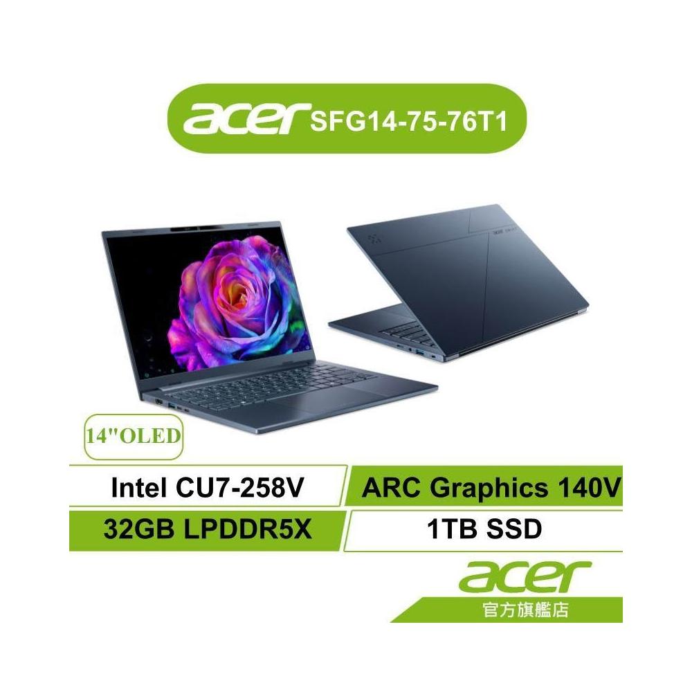 Acer 宏碁 14吋Ultra 7 OLED AI筆電-藍(Swift Go/SFG14-75-76T1/Ultra 7-258V
