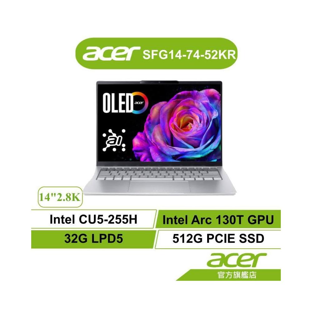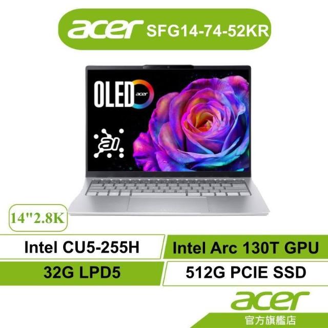 Acer 宏碁Acer宏碁 SwiftGo SFG14-74-52KR CU5-225H 32G 512G 14吋2.8K AI筆電