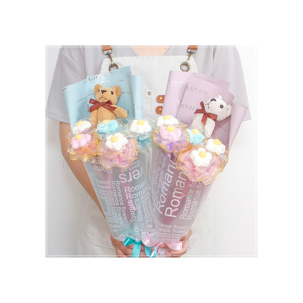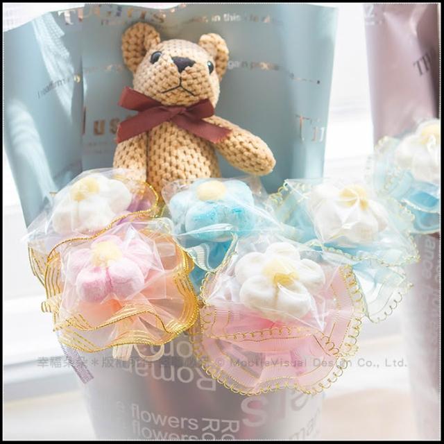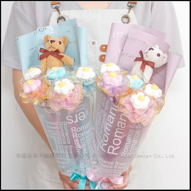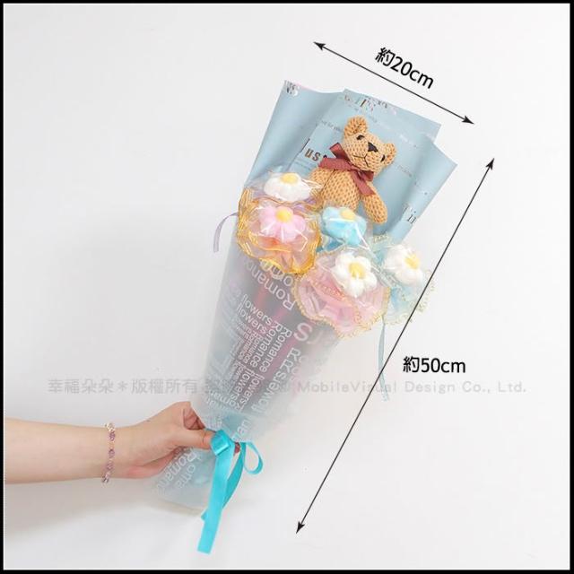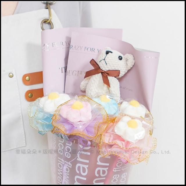 熊熊花語小花束(含格紋熊X1隻+大花花棉花糖X5支) 生日花束 畢業花束 情人節禮物 g1273