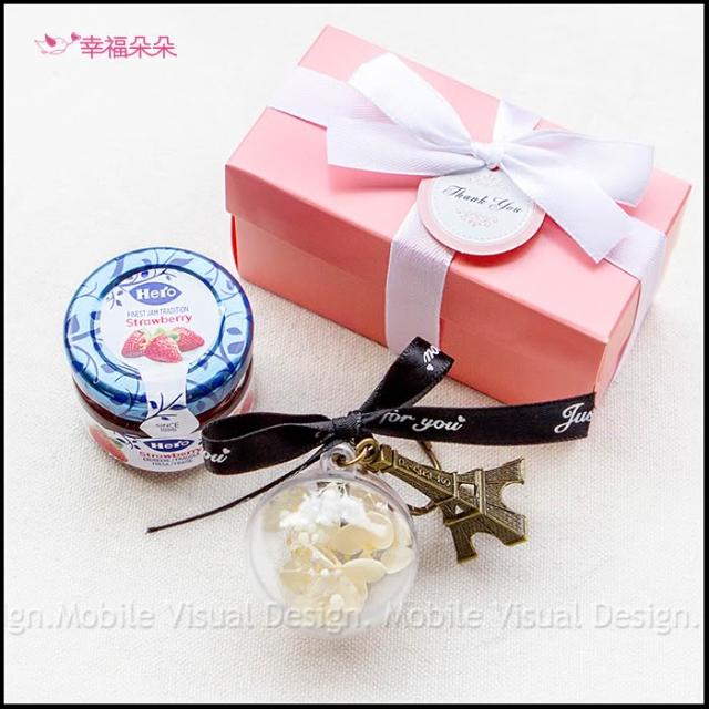 g2616 Double Love Pink粉紅盒「藍蓋hero果醬+乾燥花鑰匙圈(鐵塔款)」小禮盒 6色可挑 婚禮小物