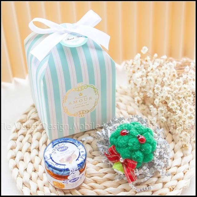 g3130AMOUR 藍色條紋盒裝 花椰菜磁鐵+hero蜂蜜 小禮盒 婚禮小物 生日禮物 送客禮 感謝禮 伴手禮