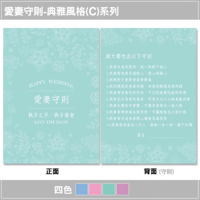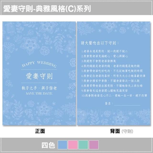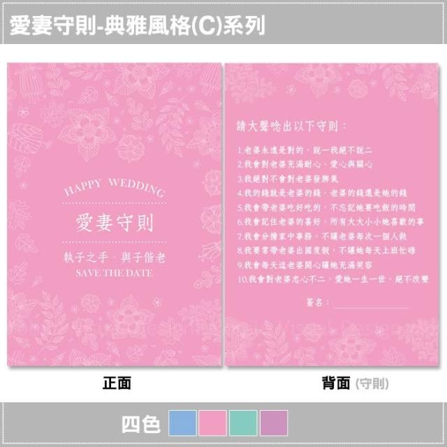 g1081 典雅風格C系列(紙卡非厚板)-愛妻守則(四色可選)/新郎迎娶/婚禮拍照道具/闖關道具