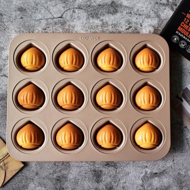 Chefmade 學廚宇宙工作室 原廠正品 12連栗子蛋糕模(WK9451不沾12連蛋糕模栗子模烤盤模)