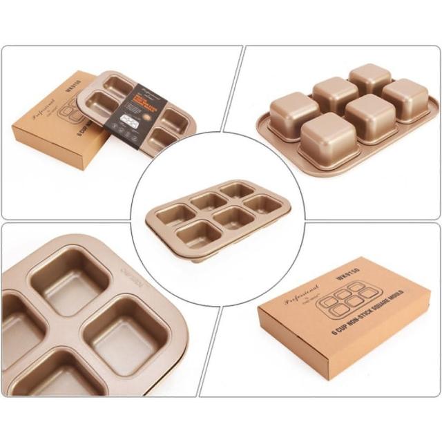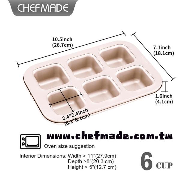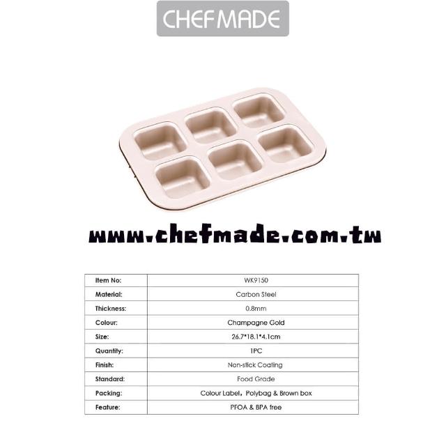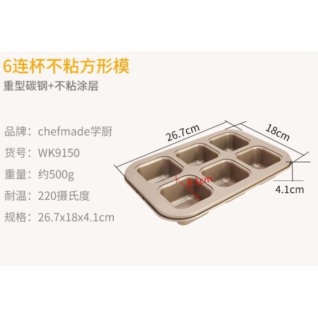 Chefmade 學廚宇宙工作室 原廠正品 方形6連迷你蛋糕模(WK9150不沾金磚蛋糕模烤盤蛋糕連模)