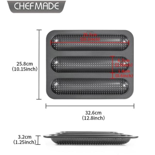 Chefmade 學廚黑色不粘法棍烤模(WK9943法國麵包烤模法棍模 長棍 法式麵包模具波浪型麵包模具)