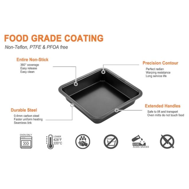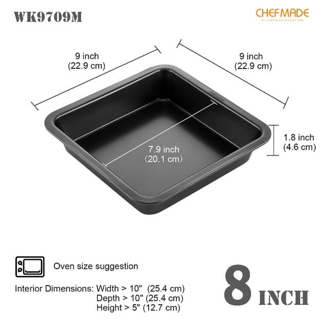 Chefmade 學廚宇宙工作室 原廠正品 8吋不沾正方形烤盤(WK9709M深烤盤8寸布朗尼烤盤蛋糕麵包披薩烤盤)