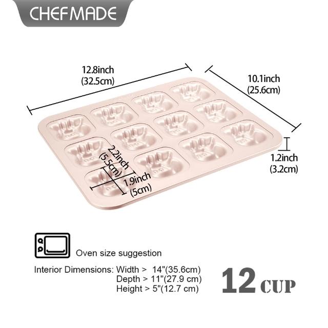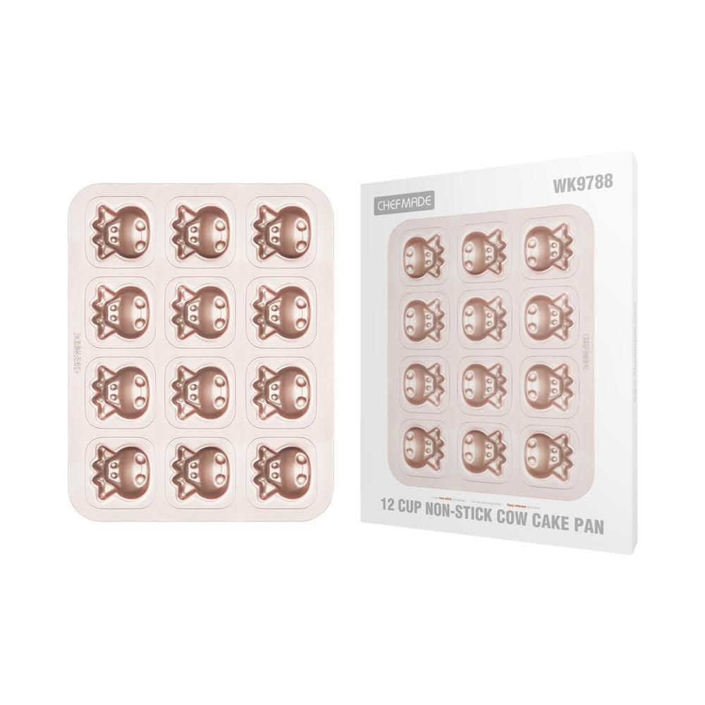 Chefmade 學廚宇宙工作室 12連杯 童趣小牛蛋糕模(WK9788金色12連小牛蛋糕模)
