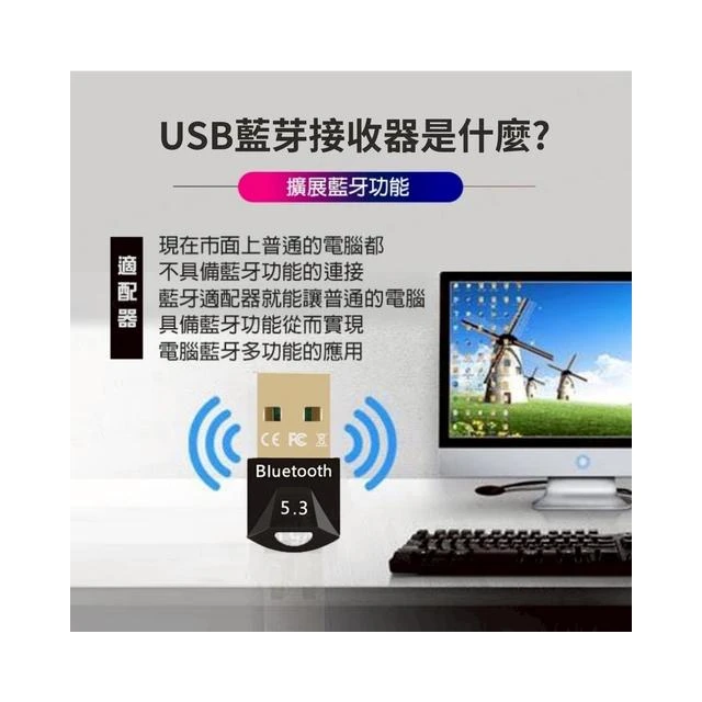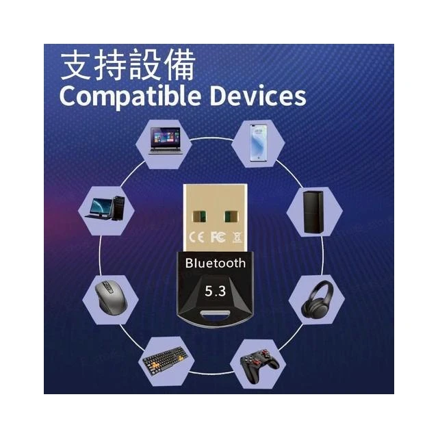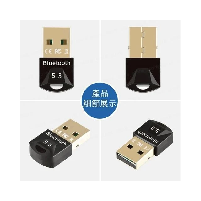 藍芽接收器5.3 電腦藍芽接收器 藍牙接收器 免驅隨插即用 電腦外接藍芽 支持Win7/10/11