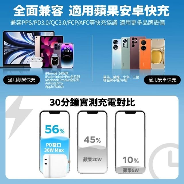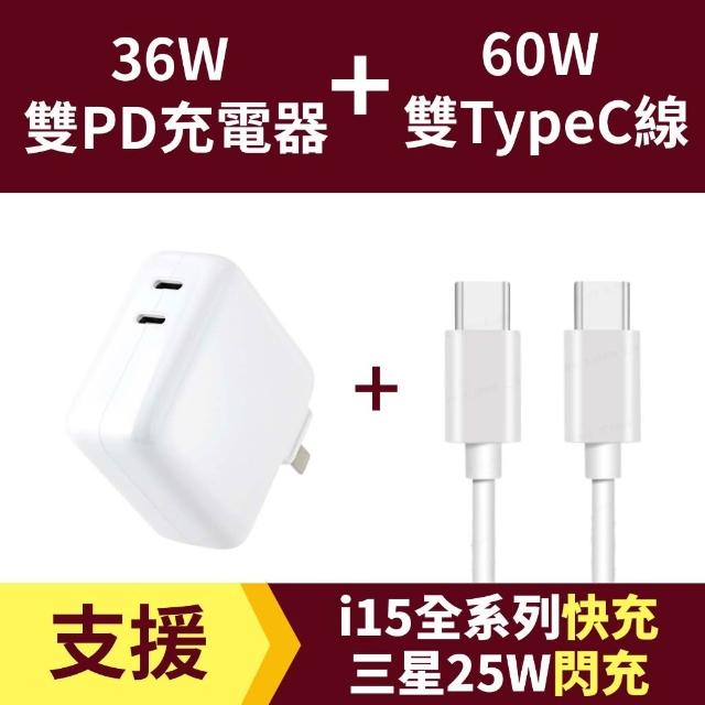支援i15快充組 GaN氮化鎵雙PD充電組 36W雙孔typec充電器 PD充電器 支援 蘋果快充 三星快充 Mac筆電