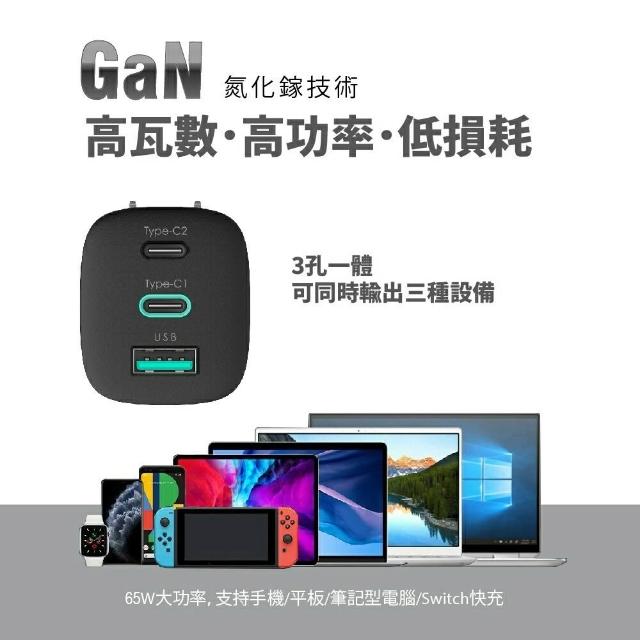 65W GaN氮化鎵 充電器 PD快充頭 筆電充電器 PD充電器 快充頭 65W type c 充電頭 65w三孔充電器